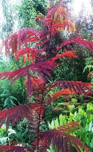 地形态及习性:乔木,高达16米,树冠呈伞状。偶数羽状复叶,花为深红色。喜光,较耐寒,耐干旱、瘠薄,不耐水涝。