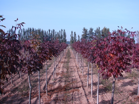 秋紫白蜡(Fraxinus americana 'Autumn Purple')秋季10月中旬叶色由紫红变艳丽深红色,红叶期长达三周,色泽鲜艳,观赏价值高;适应性较强,为城市绿化的首选彩叶乔木树种。
